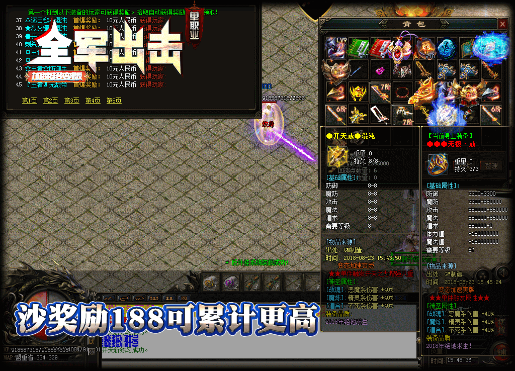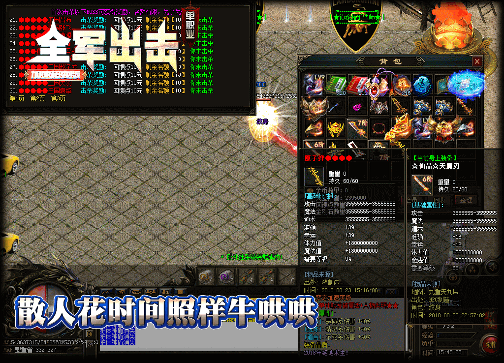 • 【游戏建议】:本服开局三张图。装备全靠打。散人也有春天。