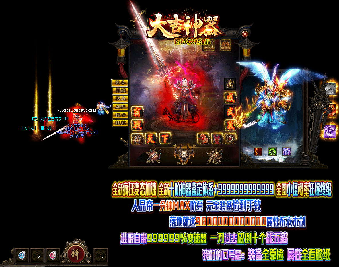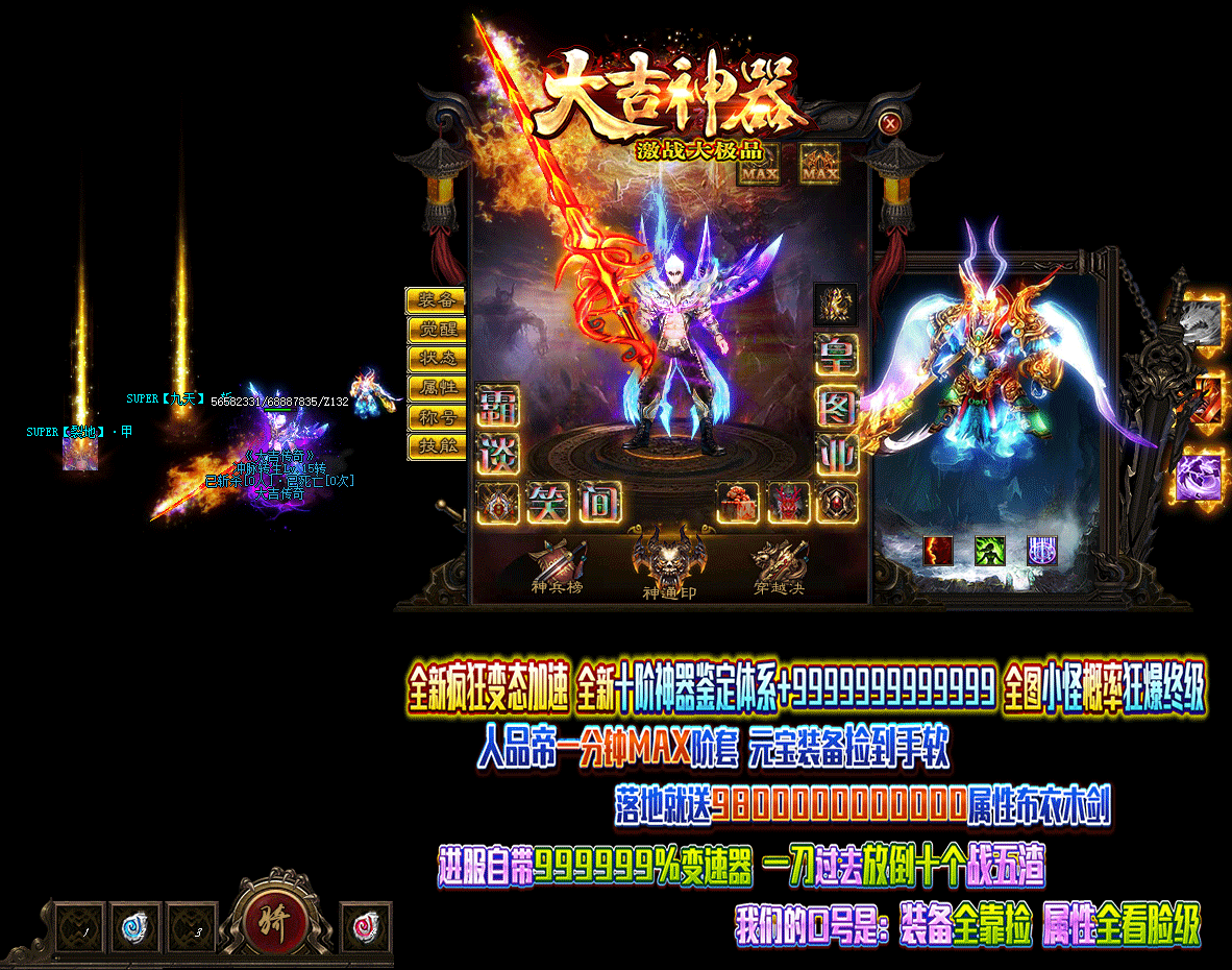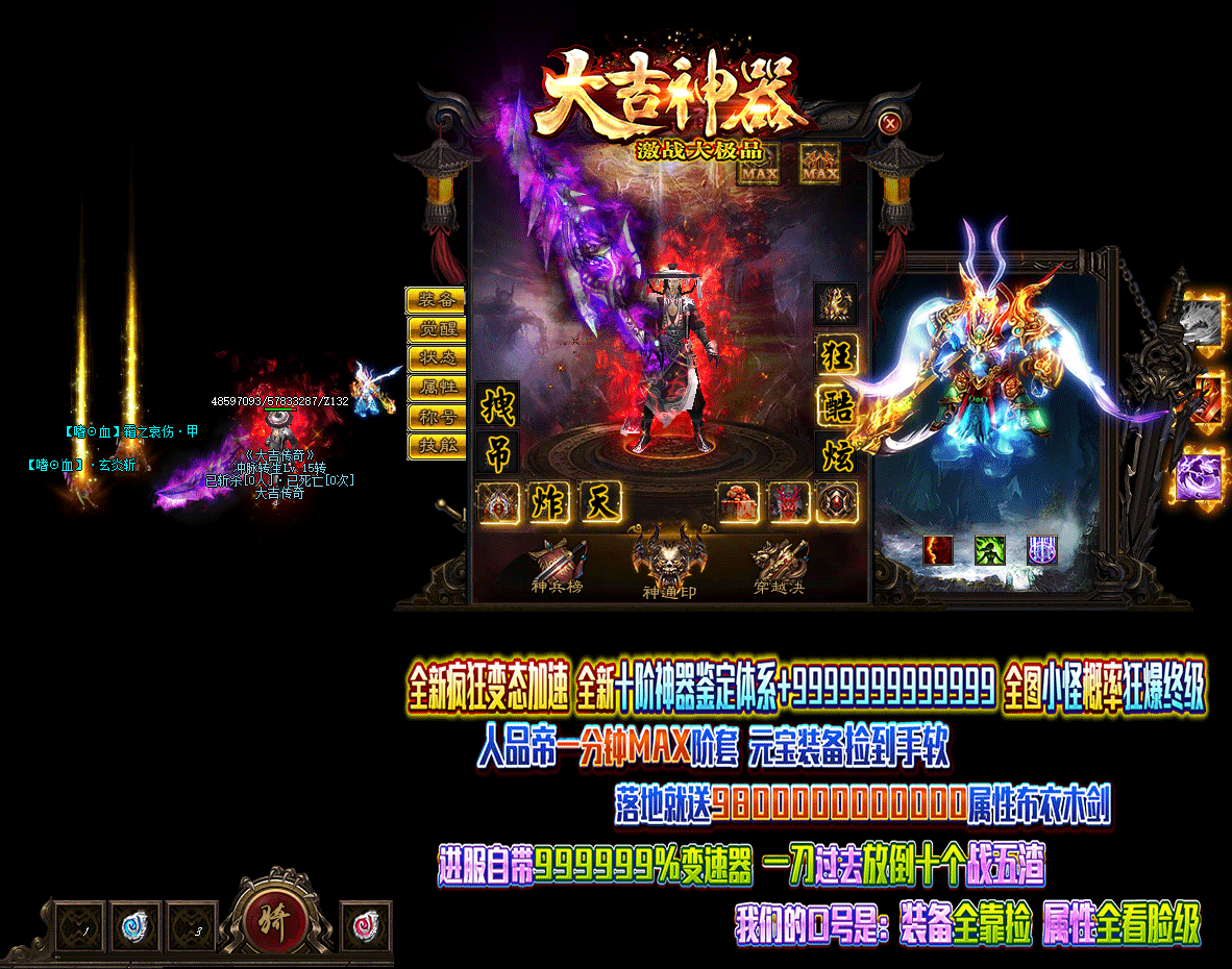 - 游戏介绍:全新十星激战大极品!装备全靠捡!属性全看脸!。