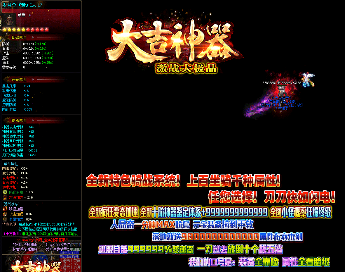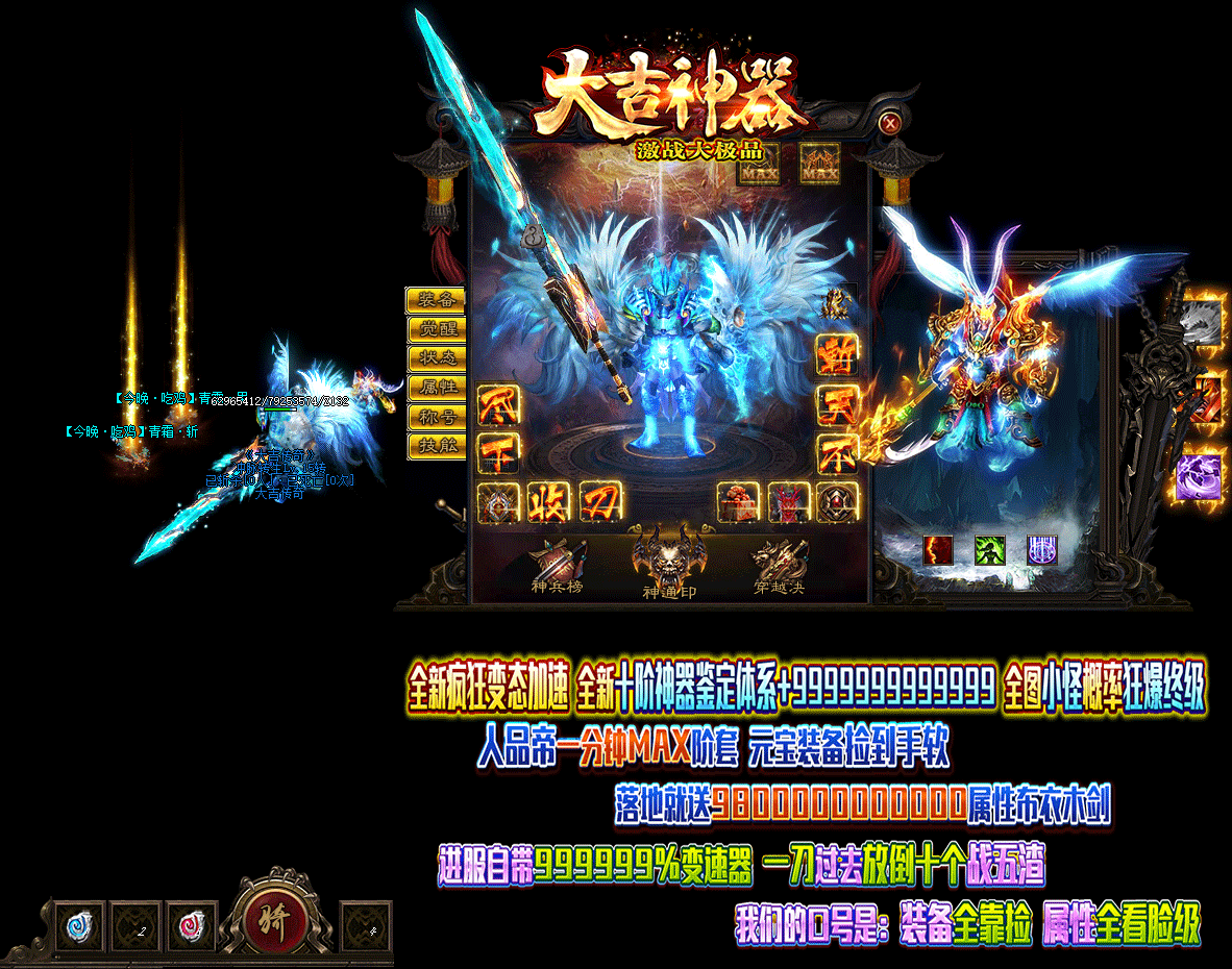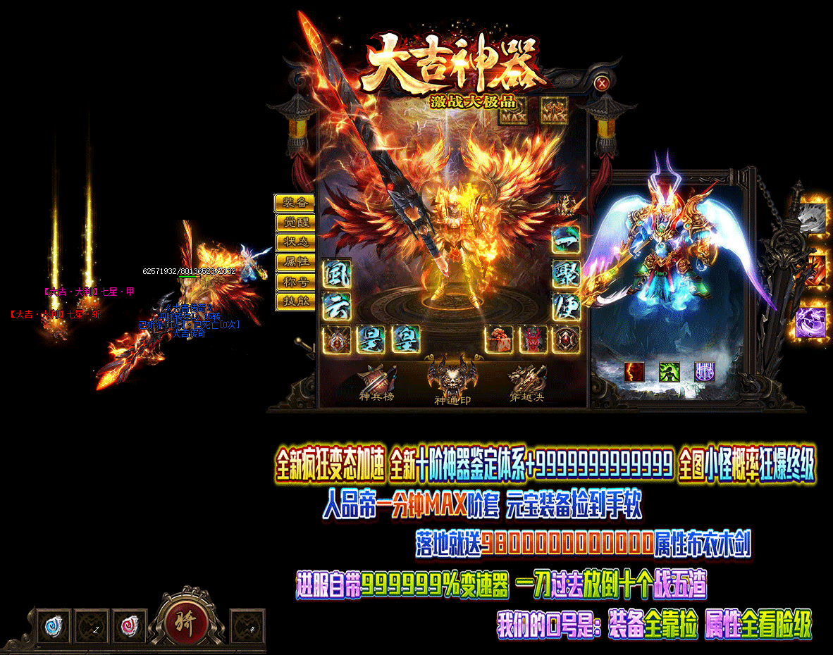 - 游戏介绍:全新十星激战大极品!装备全靠捡!属性全看脸!。